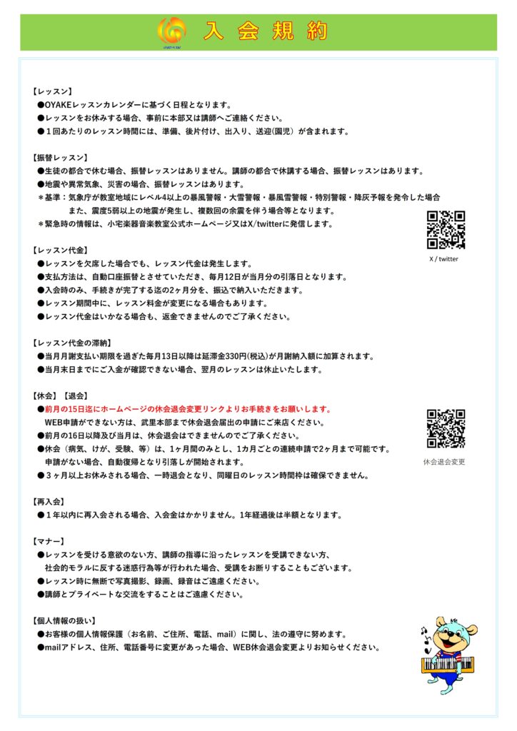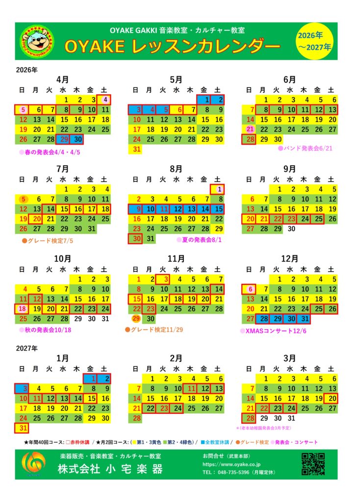 オヤケレッスンカレンダー2025年~2026年
